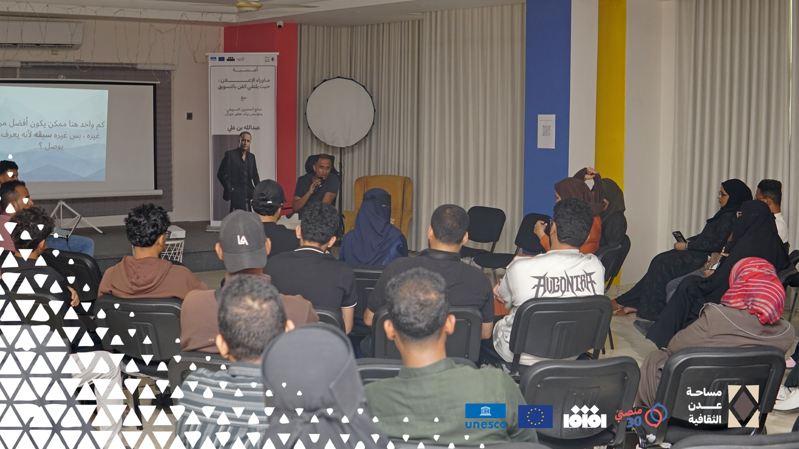 هذا النشاط أحد أنشطة مشروع “مساحة عدن الثقافية” التابع لـ”منصتي 30” ضمن منح برنامج الورشة الثقافية في اليمن المنفذ من قبل الصندوق العربي للثقافة والفنون (آفاق) بالشراكة مع اليونسكو تحت إطار مشروع توظيف الشباب من خلال التراث والثقافة في اليمن الممول من الاتحاد الأوروبي.